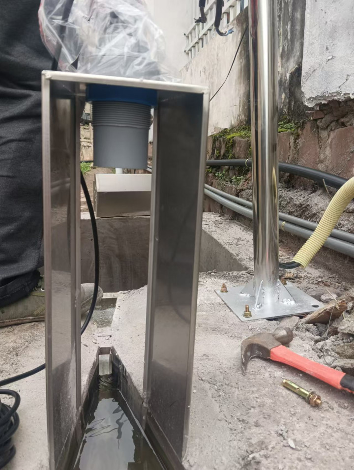 水位计安装位置需精准控制。通常在槽体上方搭建支架,支架预留安装孔(直径 62mm)用于固定水位计,使水位计探头垂直对准喉道段上游水位零点,同时保证探头与水面的距离在测量范围内,避免因管道振动导致测量点偏移。